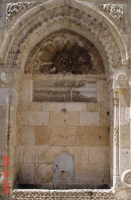 يتميز هذا السبيل بكونه أشد أسبلة السلطان سليمان القانوني شبهاً بسبيل باب السلسة ، فواجهته الأمامية أشبه ببوابة مستطيلة، تبلغ أبعادها (4×4,20)م²، ويقوم على جانبيها أعمدة مجدولة يعلوها تاجان منحوتان، وهي بمثابة الأرجل التي تقوم على حطات أو صفوف من الحنيات المجوفة والمقببة التي تتدلى خلال تتابعها المتناسق والتي تعرف بالمقرنصات. ويتوسط البوابة لوحة لتأسيس السبيل منقوش عليها بالخط النسخي التركي الجميل. ويعلو البوابة قوس بمثابة عقد مدبب يغطي واجهة البناء، وهوعقد مدبب ثنائي الأقواي يضفي جمالاً على بناء السبيل ومكوناته. أما حوض الشبيل، فيمتد أسف لوحة نقش التأسيس بطول 120 سم وارتفاع 50 سم، وفي منتصفه صنبور للماء وكان يستمد هذا السبيل المياه من قناة السبيل مناصفة مع حمام العين المجاور له من الجنوب.