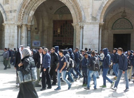 ما زال طلاب مصاطب العلم في المسجد الاقصى عرضة لسياسيات الاحتلال وانتهاكاته بشكل شبه يومي ، وذلك من خلال طرق مختلفة من بينها احتجاز الهويات والمنع والابعاد وحتى الاعتقال ؛ يقع ذلك تحت حجج واهية أوجد لها الاحتلال مسميات جوفاء مثل ” اثارة الشغب وتخطير سلامة الجمهور ” بالاضافة الى تهمة التكبير الذي هو عبارة عن ذكر للفظ الجلالة يحاسب عليه الاحتلال إما بالإبعاد أو الاعتقال التعسفي .