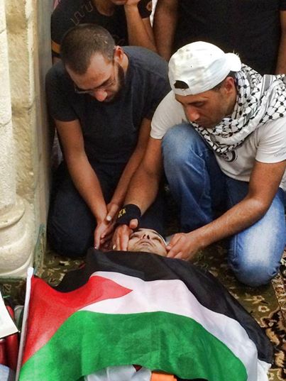 وقالت عائلة الشهيد:” بأن نجلها اصيب برصاص حي في الحوض، خلال اندلاع مواجهات عنيفة، وان جنود الاحتلال اطلقت بشكل كثيف الرصاص الحي، وتم اعتقالهُ بعد أن سقط أرضاً متألماً من جراحه وصراخه الذي ملئ المكان، من قبل جنود الاحتلال حيث تم سحبه من قبل الجنود رافعينه من اليد والأرجل الا ان تم وضعهُ على الارض بالقرب من شارع حزما-جبع، وبقي ينزف دماً على الارض وبعد تدخل سيارات الاسعاف والارتباط في المكان تم نقل جثمانه الذي فارقت الحياة الا ان وصل مستشفي رام الله.