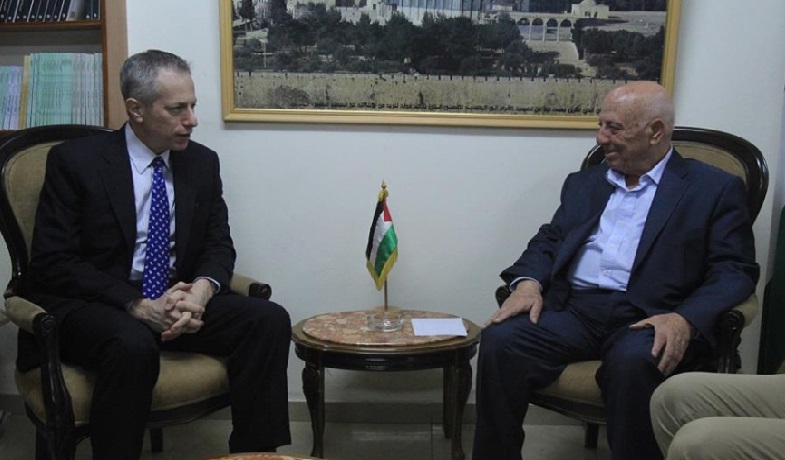 واطلع قريع، القنصل الأمريكي على أخر المستجدات والتطورات في مدينة القدس والمسجد الأقصى المبارك ،وما يتعرض له شعبنا من حملة تصعيد إسرائيلية غير مسبوقة من خلال سلسلة الاعتداءات اليومية التي طالت الشبان والأطفال والنساء وسياسة الاعتقالات وهدم البيوت ونهب الأراضي، وما يجري في المدينة المقدسة من محاولات تهويد بشكل متصاعد، من خلال سماح حكومة الاحتلال الإسرائيلي للمستوطنين المتطرفين باقتحام ساحات المسجد الأقصى بشكل يومي بحماية شرطة الاحتلال الإسرائيلي.
