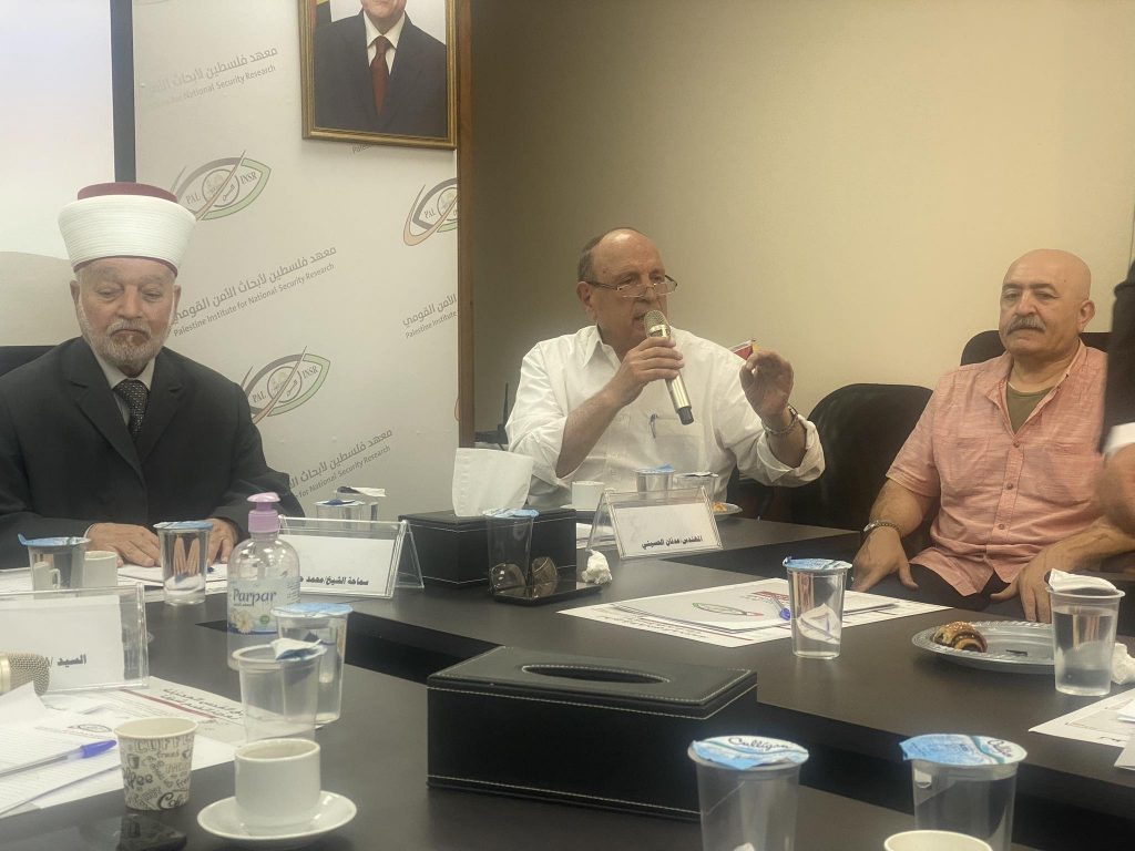 رام الله – اكد عضو اللجنة التنفيذية لمنظمة التحرير الفلسطينية، رئيس دائرة شؤون القدس المهندس عدنان الحسيني، ان الحرب مع هذا الكيان الاسرائيلي الصهيوني هي حرب معنويات واذا هدمت المعنويات هدمت فلسطين، جاء ذلك خلال ندوة نظمها معهد فلسطين لأبحاث الأمن القومي بالتعاون مع دائرة شؤون المغتربين بعنوان “القدس بعد75 عام على النكبة و 65 عام على النكسة”
