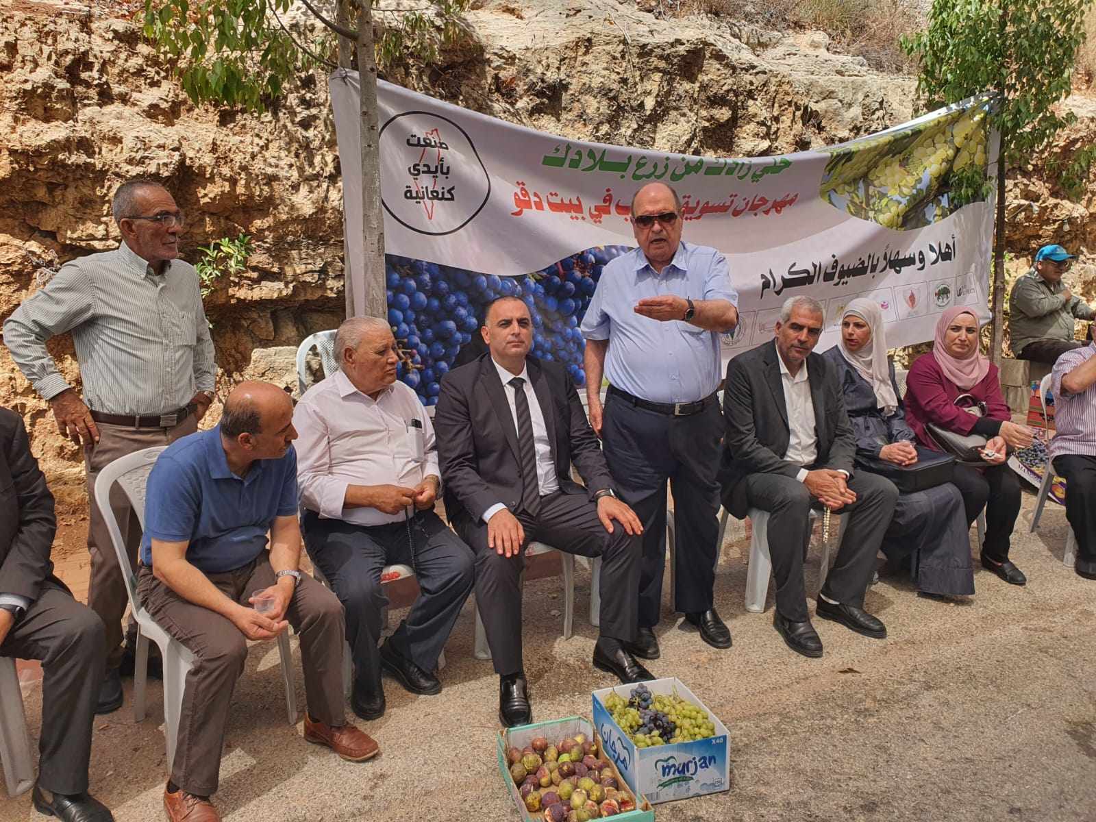 افتتح المهندس عدنان الحسيني ، عضو اللجنة التنفيذية لمنظمة التحرير الفلسطينية ، رئيس دائرة القدس ، ووزير شؤون القدس الدكتور أشرف الأعور ووكيل وزارته الدكتور سعيد يقين ، وموفق الخطيب مدير محافظة القدس في منطقة شمال غرب القدس ، ورئيس مجلس محلي بيت دقو ، وممثلين عن اتحادات الفلاحين والشباب وجمع غفير من المزارعين وألاهالي ، مهرجان العنب الثالث في بلدة بيت دقو شمال غرب القدس ، والذي بات تقليدا سنويا من شأنه ان يعزز العودة الى الأرض وتسويق المنتجات الوطنية كجزء من النضال في مقاطعة البضائع الإسرائيلية . وقال الحسيني ان ثمة علاقة بين الانتماء وتشجيع المنتج المحلي تبدو جلية في مشاركة جموع الفئات في المساهمة الفاعلة في زيادة الدخل القومي والحد من الاعتماد على المنتج الإسرائيلي ، الامر الذي يدفع باتجاه تمكين مؤسساتنا من استكمال مشروعاتها الوطنية لتحقق النهضة المرتقبة والتي تقودنا الى مراحل متقدمة في تأسيس الدولة المستقلة . وأوضح إن التربية على شراء المنتج الوطني يحدث نقلة لاقتصادنا القومي حيث تستطيع مؤسساتنا الإنتاجية بكافة تنوعاتها أن تستكمل بناء قواعدها الإنتاجية المحلية وتعدد من خطوط إنتاجها ، ومن ثم تزداد فرص العمل ، كما يؤدي ذلك إلى تنافسية في عروض الأسعار مع الحرص على الالتزام بتحقيق معايير الجودة التي يجعل للمنتج المحلي ميزة تنافسية . بدوره قال وزير شؤون القدس الدكتور الأعور إننا في مرحلة استثنائية تسعى الدولة فيها بكامل مؤسساتها أن تلبي الاحتياجات الأساسية للمواطن وتخفف عنه ثقل المعيشة ، وهذا مرهون في الاعتماد على منتجاتنا الوطنية والحرص على تسويقها في اسواقنا المحلية أولا ، والحد من الاستيراد وتقليص الواردات قدر الإمكان ، من خلال الاكتفاء بالمنتج المحلي والعمل المستمر والمتواصل تجاه زيادة صادراتنا لنحدث حالة من التوازن في الجانب الاقتصادي، وبالطبع يرتبط هذا المنحى بفلسفة الأولويات المقدمة عن الكماليات ، داعيا الى ضرورة التوجه الى جهات الاختصاص في العمل ما سيعمل على تعزيز عملية الجودة في المنتج الوطني . .